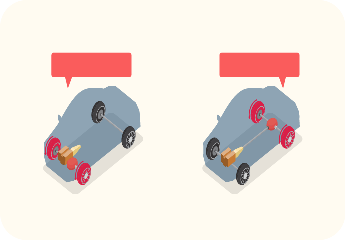 エンジンやモーターの動力がどのタイヤに伝わるかの違いです。