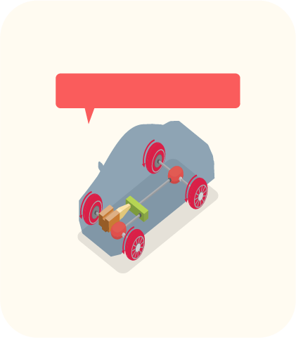 タイヤの「回転」する力と「向き」を変えています。